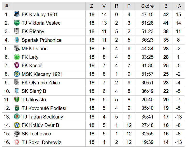 FK Mělník 1901 B – FK Kralupy 1901 B 5:4 (4:1)