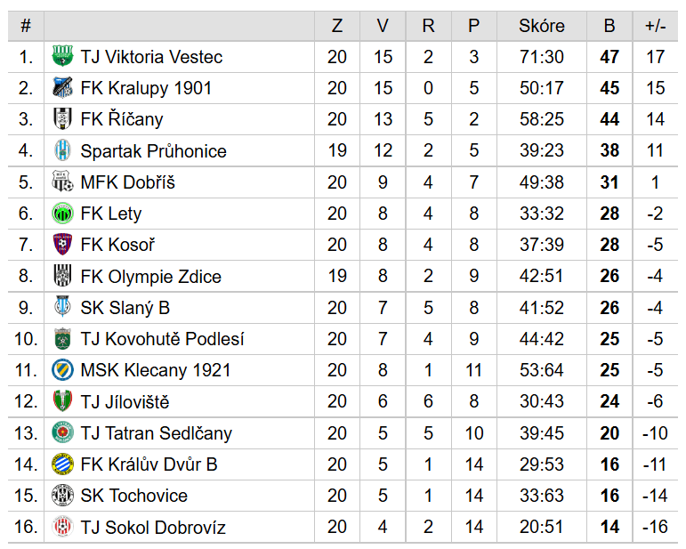 FK Kralupy 1901 – FK Králův Dvůr B 2:0 (0:0)