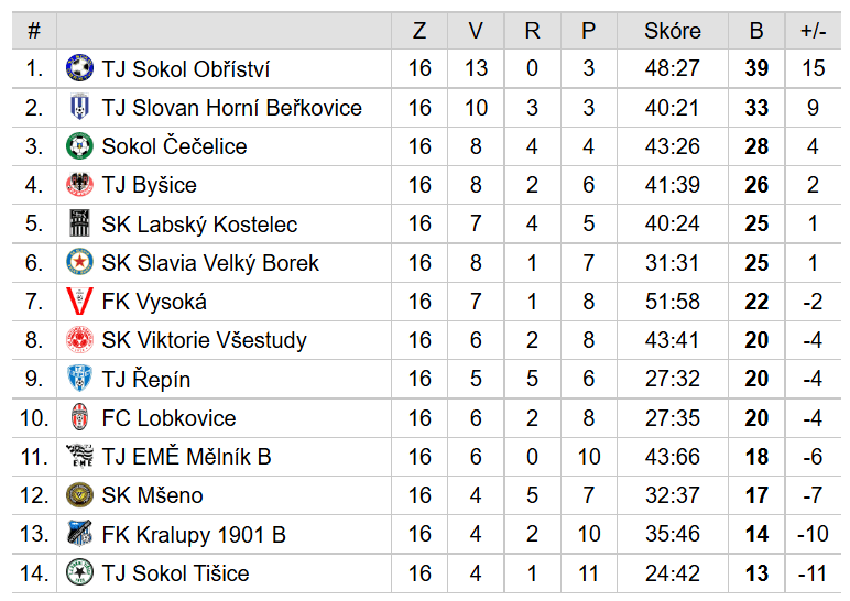 SK Slavia Velký Borek – FK Kralupy 1901 4:5 (2:1)